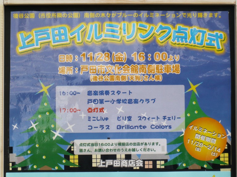 それに伴いまして、イルミネーションの点灯式を文化会館駐車場にて行います