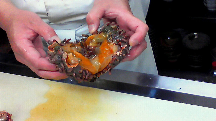 オレンジ色のホヤの身が登場です