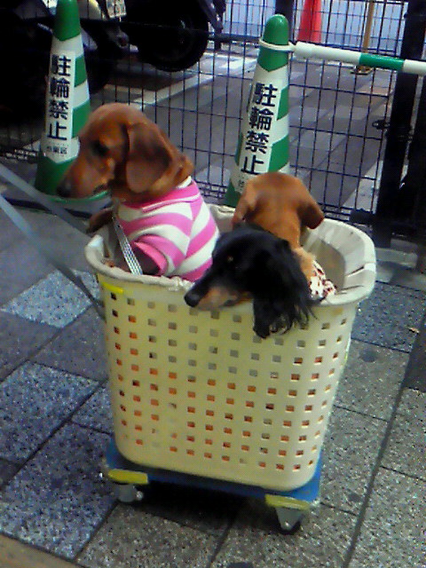 カートの中には3匹のダックスフンドが可愛らしく収まってまして・・・