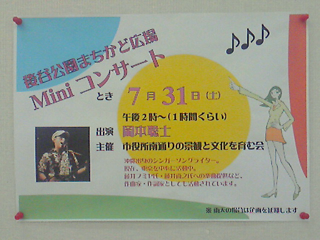 昨日は31日(土)に街角広場で岡村聡士さんのライブがある事を書きましたが、