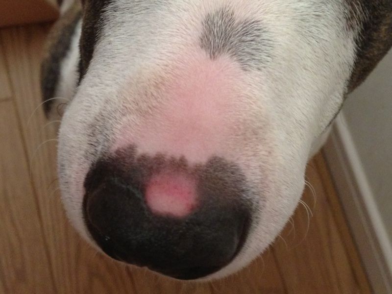 気がついたらオラのトレードマークの黒いお鼻の頭に赤い穴が出来ちまったよ。