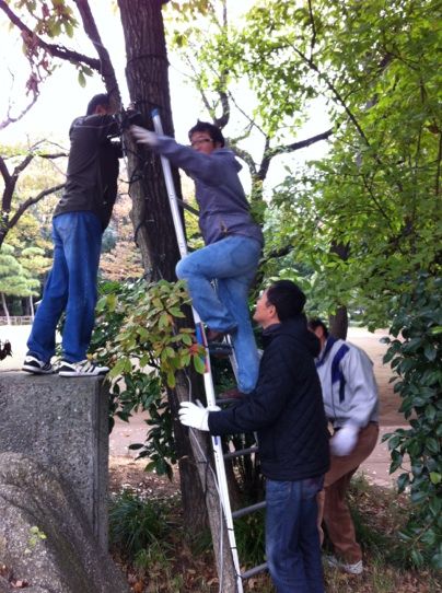 そして、今年はみんなでも届く数本の木にもイルミネーションを付けてみました。