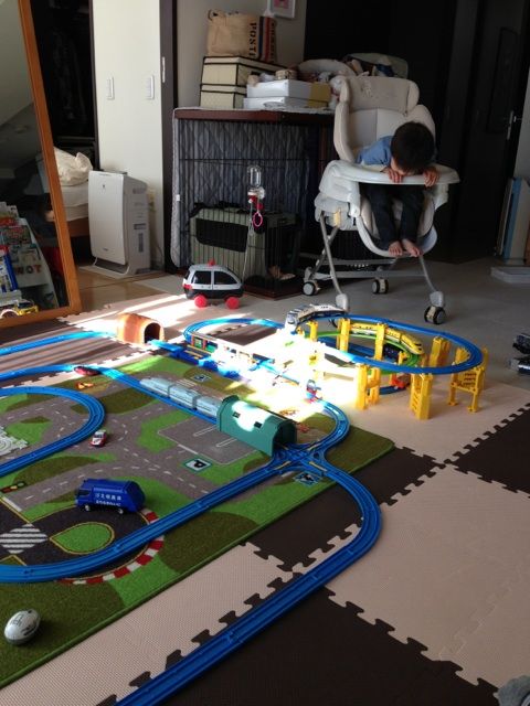 これまた久しぶりに大きなプラレールセットを作り、息子は大満足。