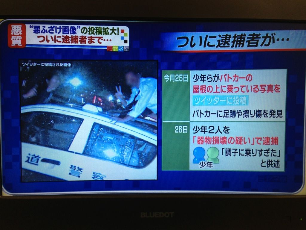 今日は朝とか昼の番組でも取り上げられてましたが、悪ふざけ画像でついに逮捕者がでたようですね。