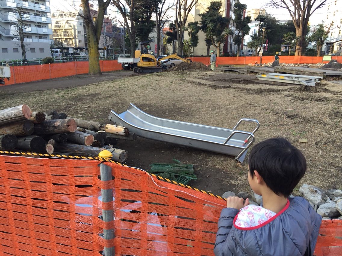 息子も公園に行ってはリニューアルされる遊具を楽しみに、そして、工事現場の作業を見るのも楽しんでいます。