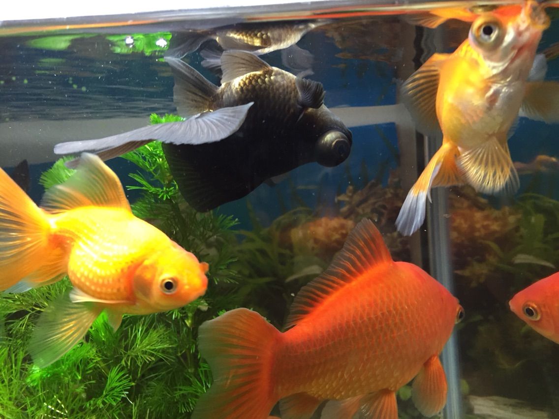 1匹ほど、成長し過ぎたのかわかりませんが、大きくなりすぎた黒の出目金ちゃんが…