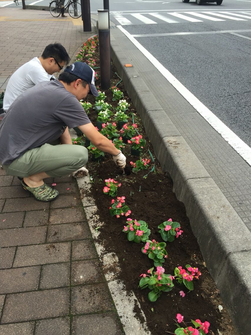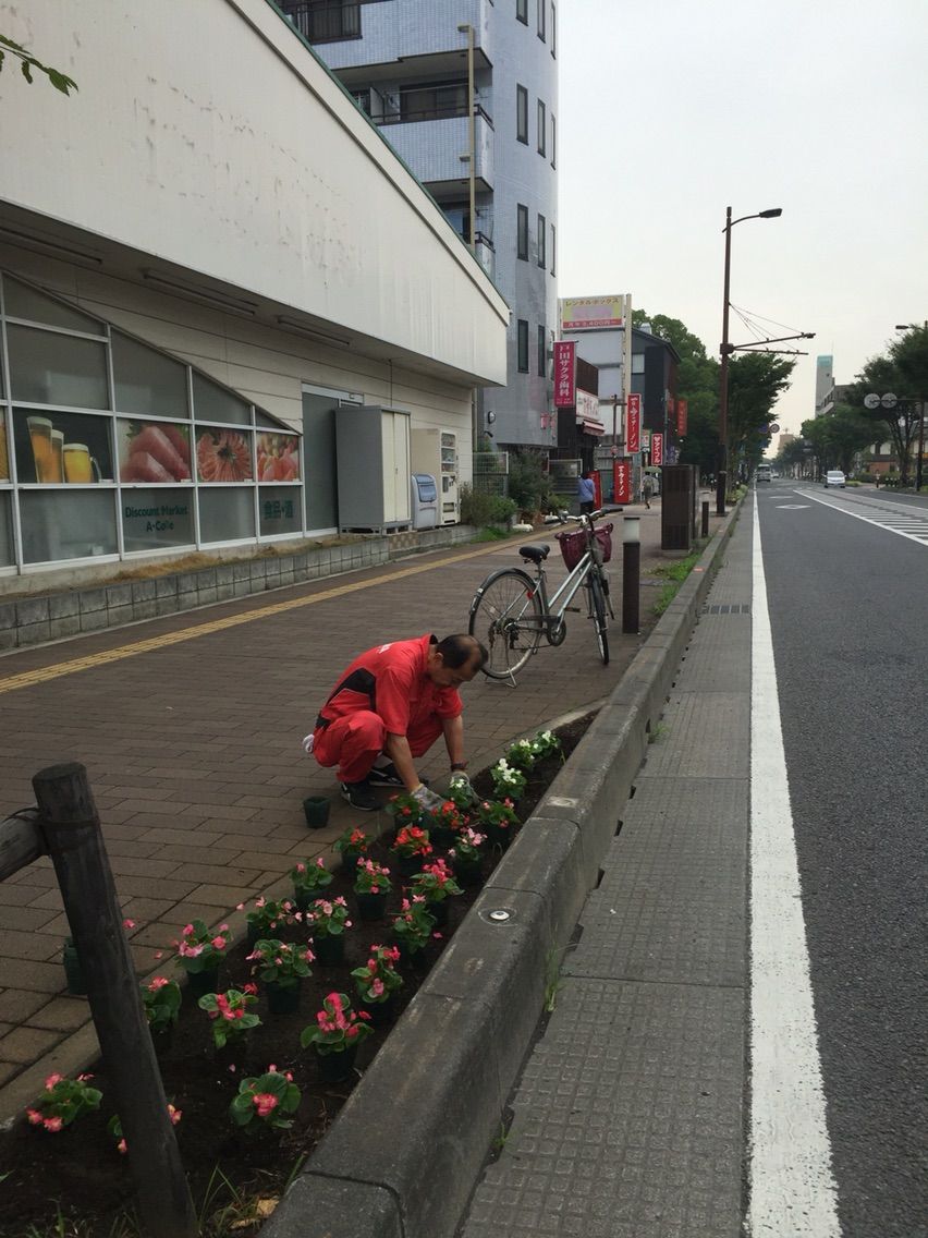 今朝は市役所南通りの花壇の花植替えをしました!