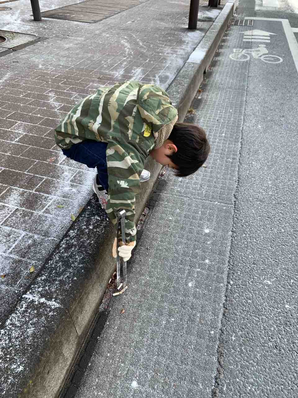 ゴミ拾いというより、雪の中のゴミを探し出し方が楽しかったようです… 笑