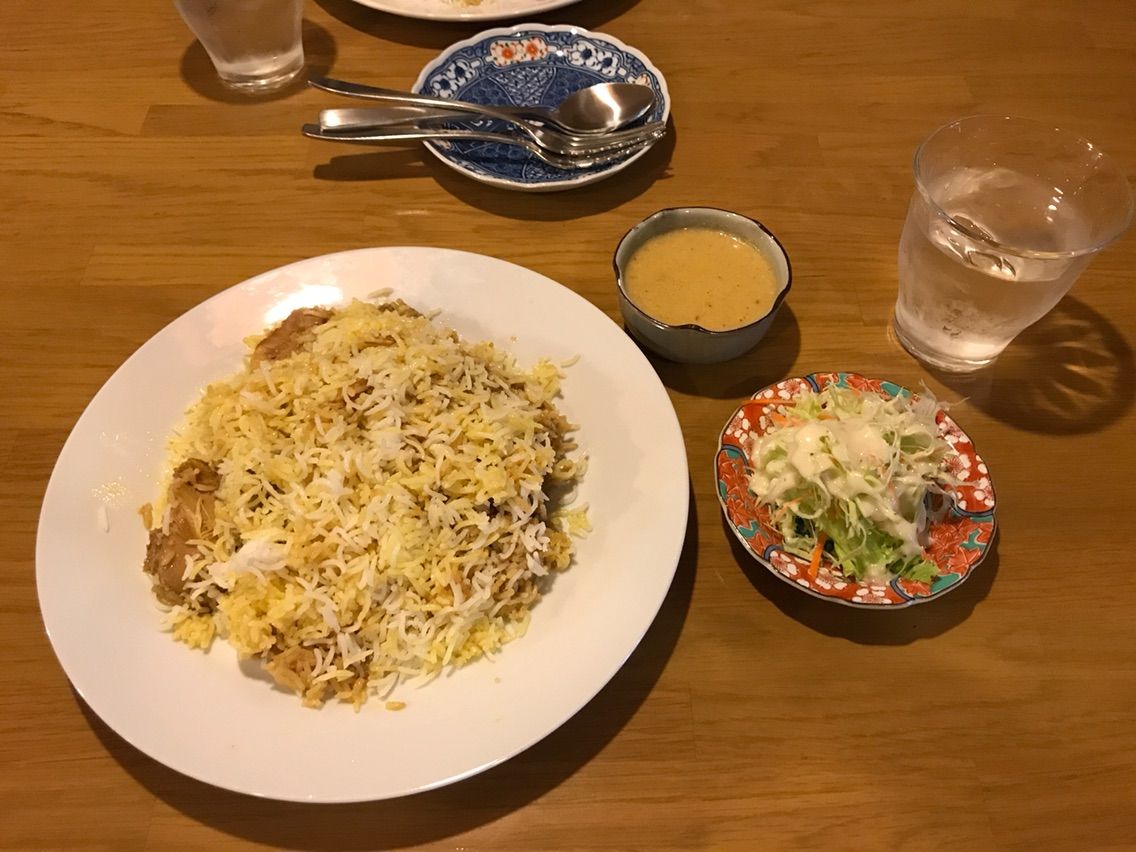 バングラデシュのお料理らしいのですが、チキンビリヤニというカレー風なチキンライスみたいなお料理をいただきました。