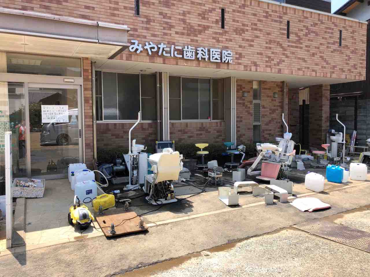 幸い住まいは二階だったので、なんとか生活は出来ているようですが、診療台はすべて浸水し、水の復旧もまだまだなので、診療再開のメドも立たないようです。
