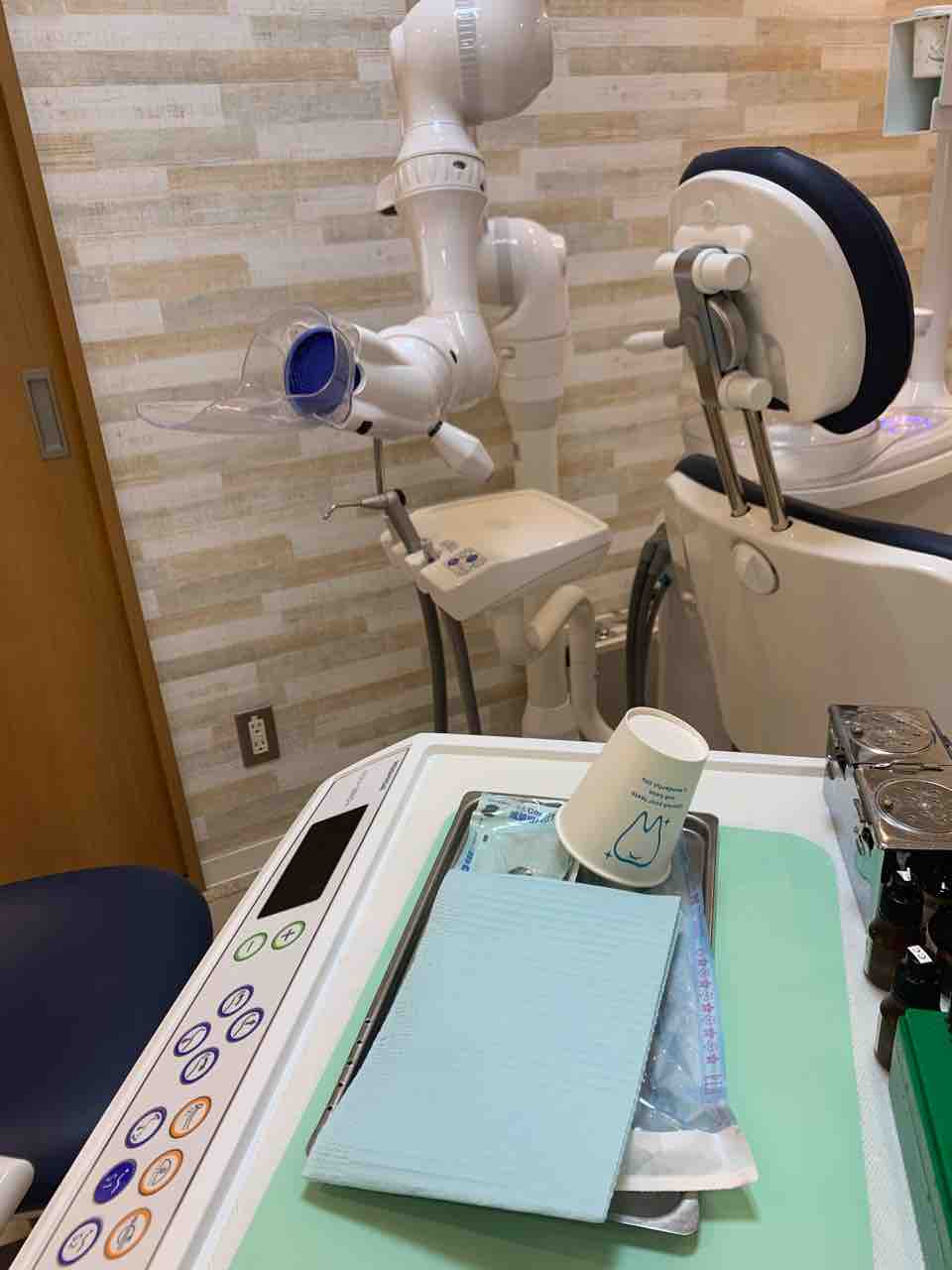 ・患者様の口元に口腔外バキュームを設置(エアロゾル感染防止)