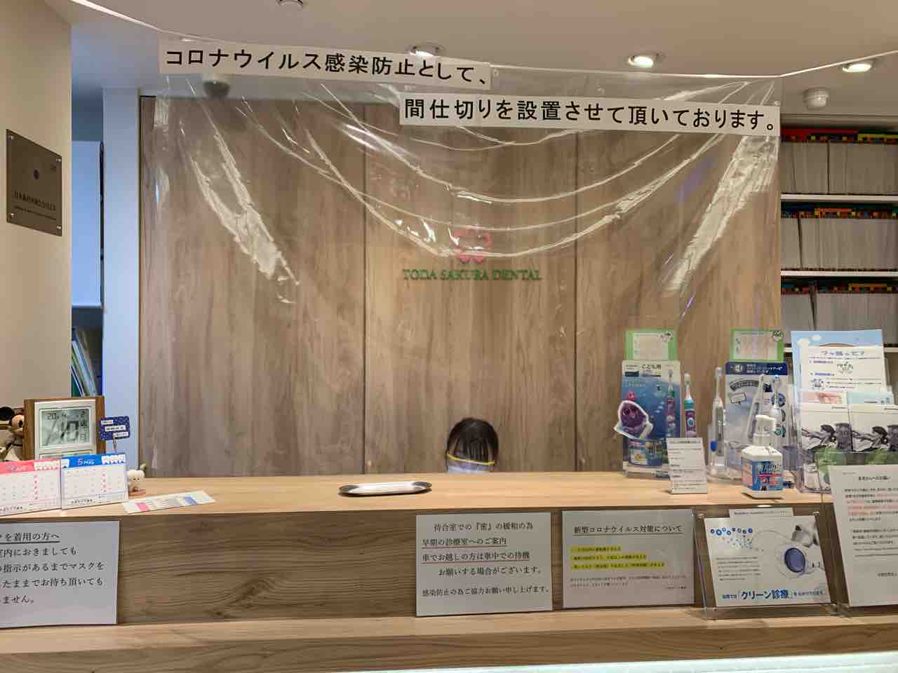 ・受付に間仕切り(ビニールシートで飛沫感染を防ぎます)