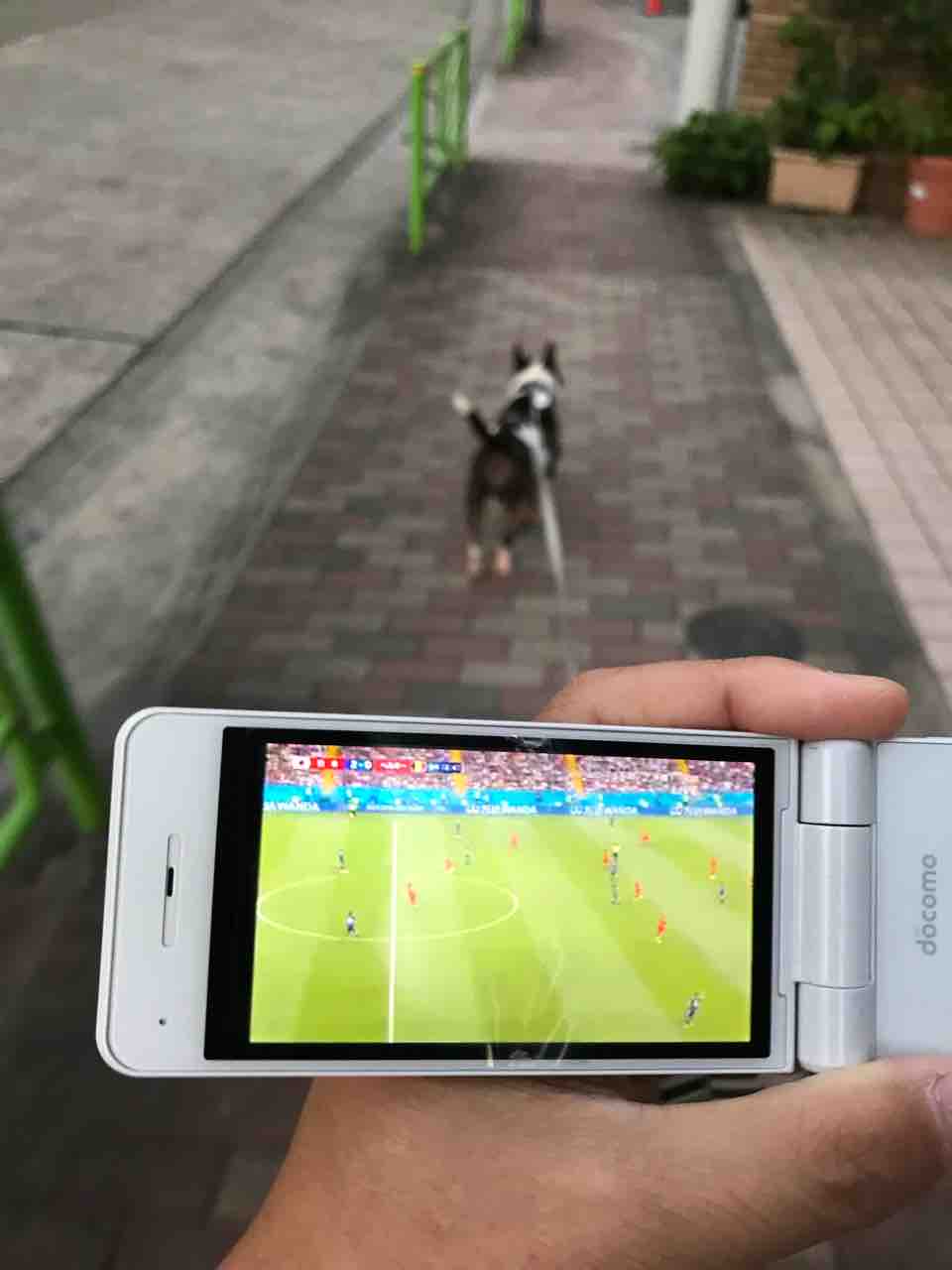でも、散歩中も気になり、ガラ携のワンセグ観ながらのお散歩…